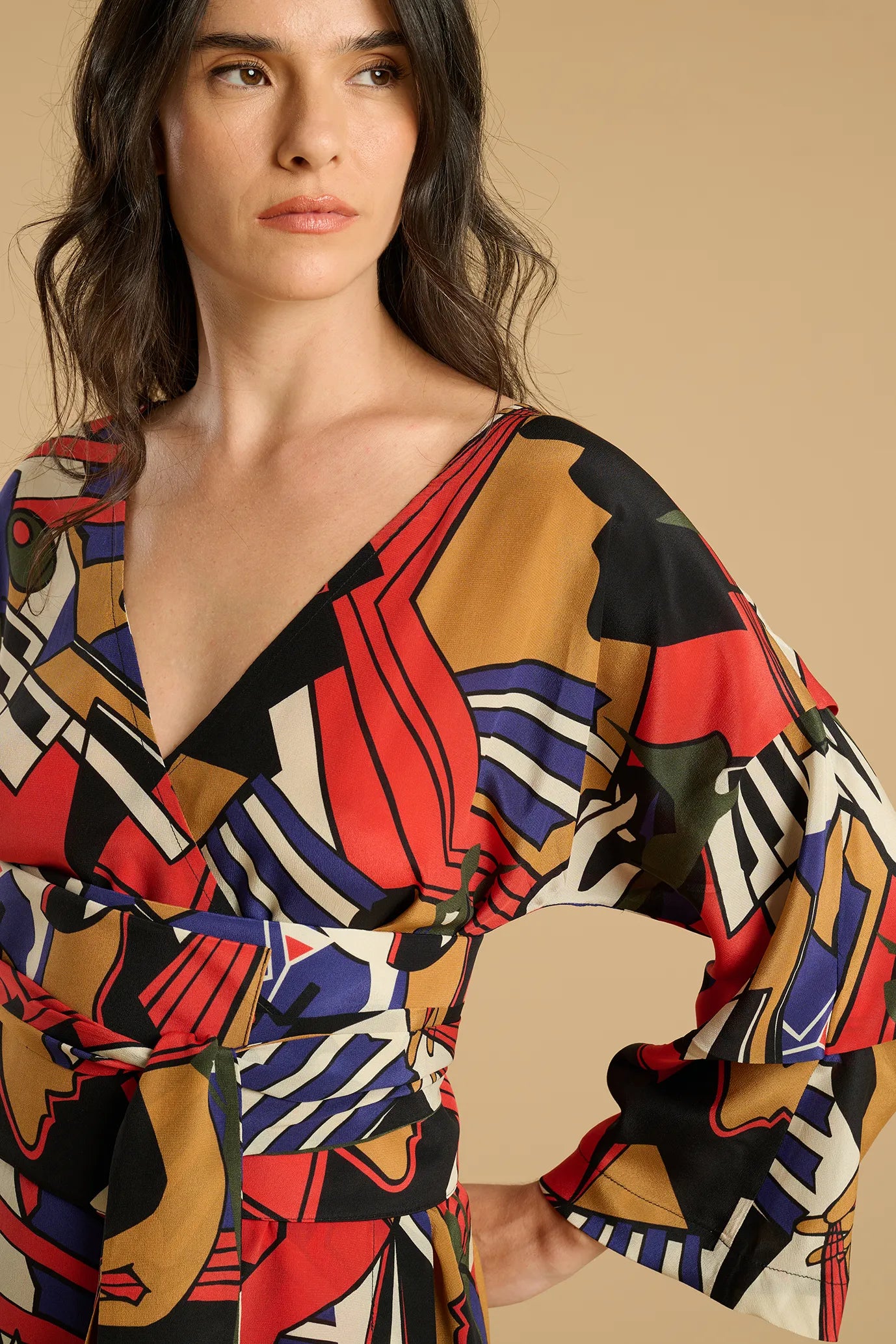 A Estampa Baila é o auge da celebração. Inspirada no movimento e na liberdade do corpo, ela dança em cores vibrantes. No vento do verão, veste a alegria que transforma o instante em festa.