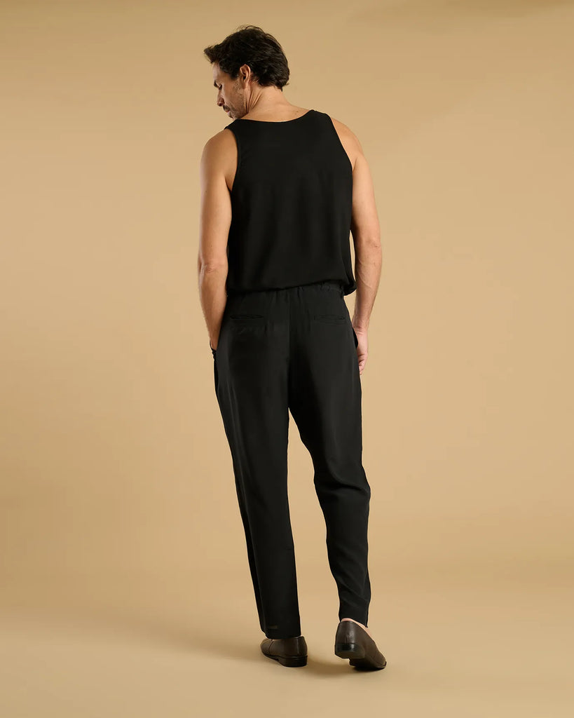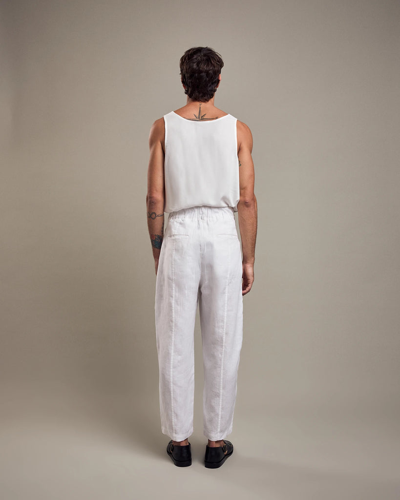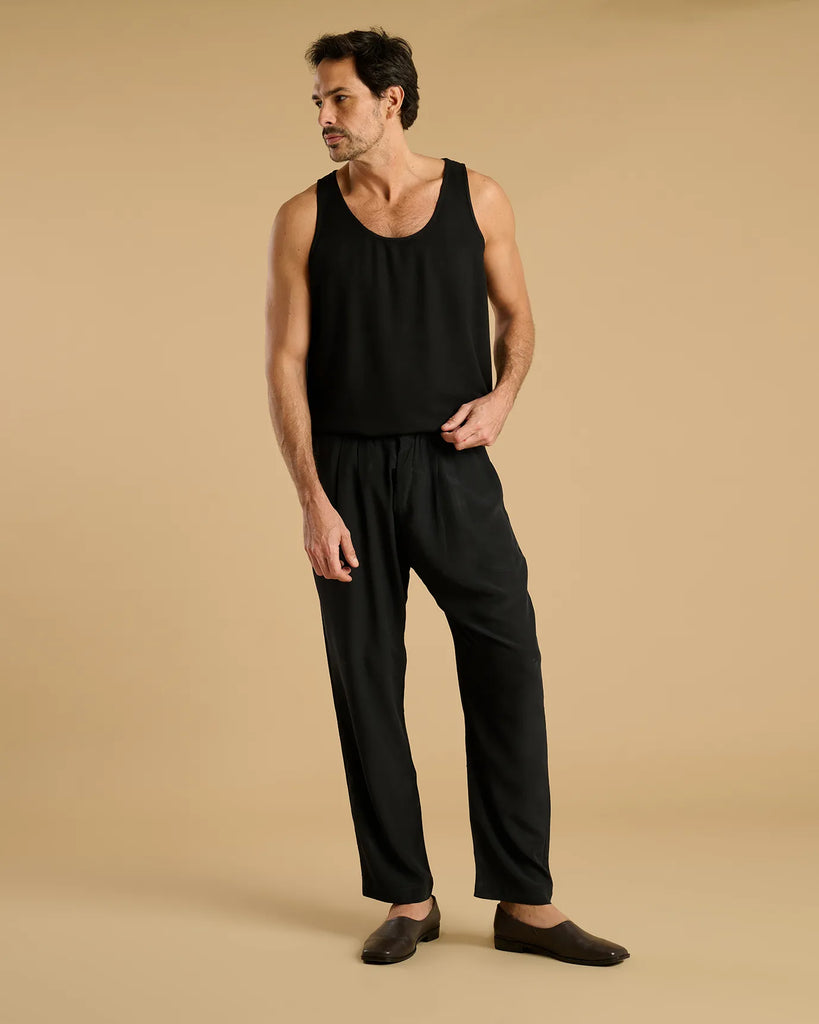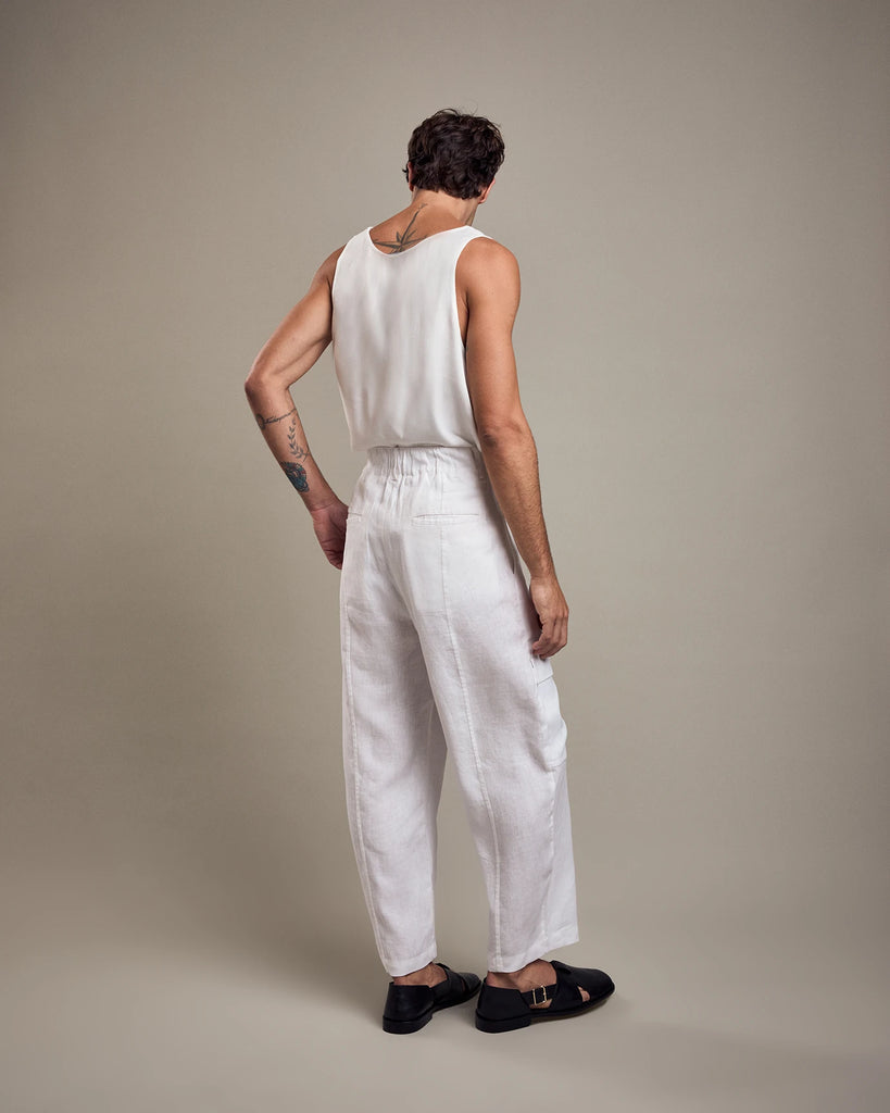 Loose fit, sleeveless, U-neckline and rounded sides.