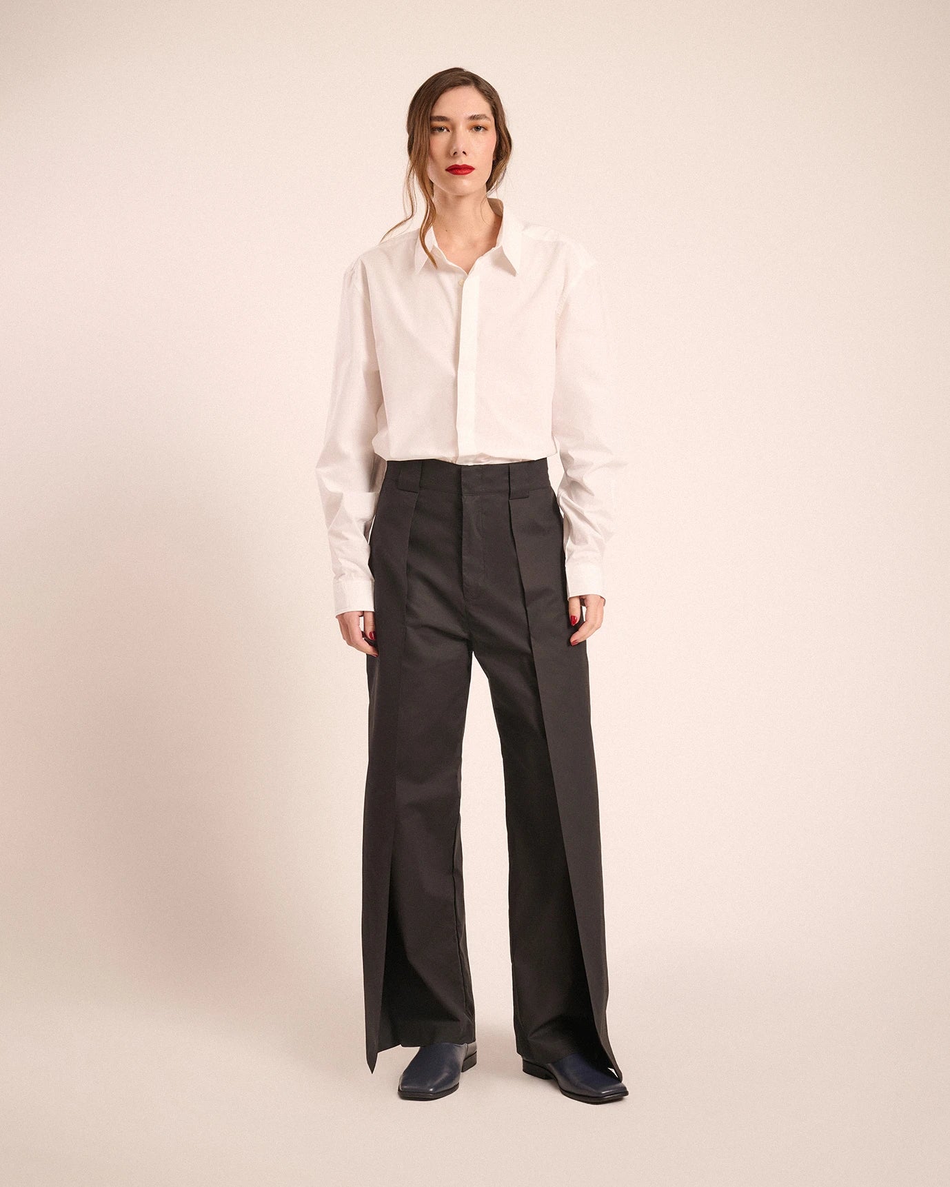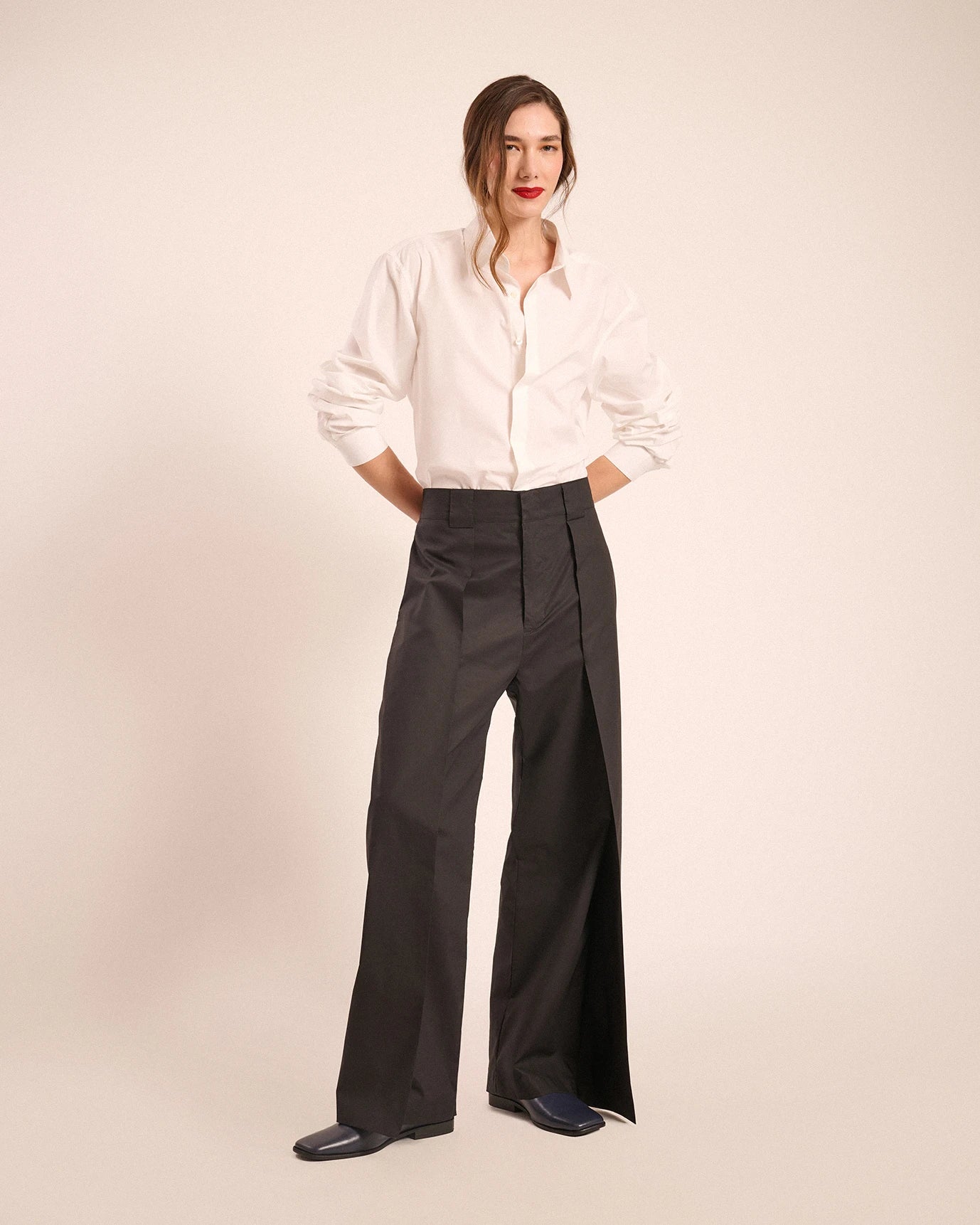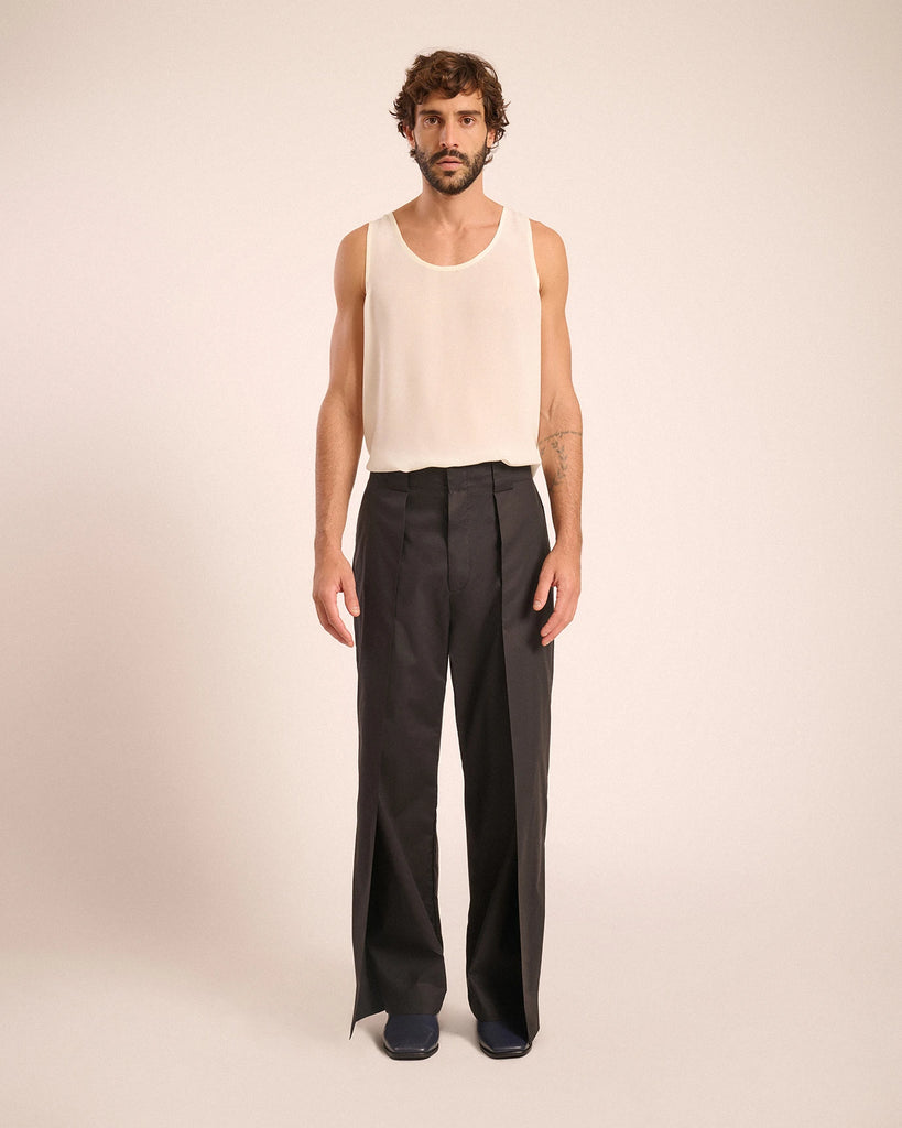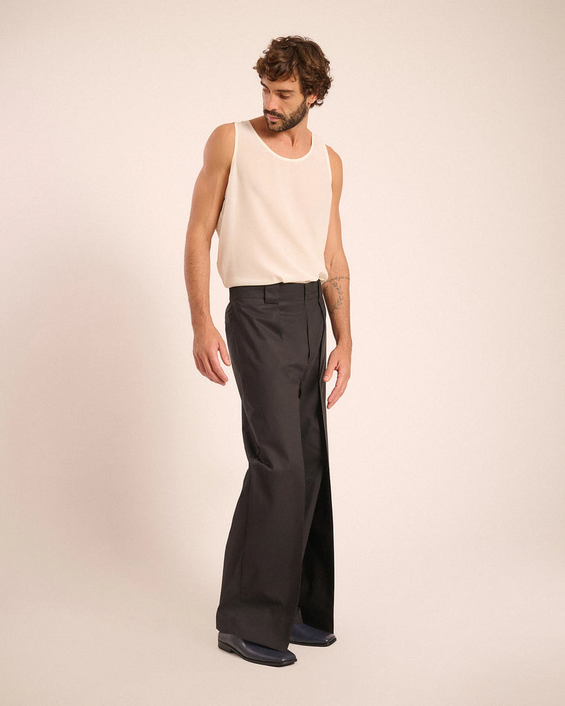 Loose fit, elastic waistband on the side, wide belt loops, built-in pocket on the sides and back.